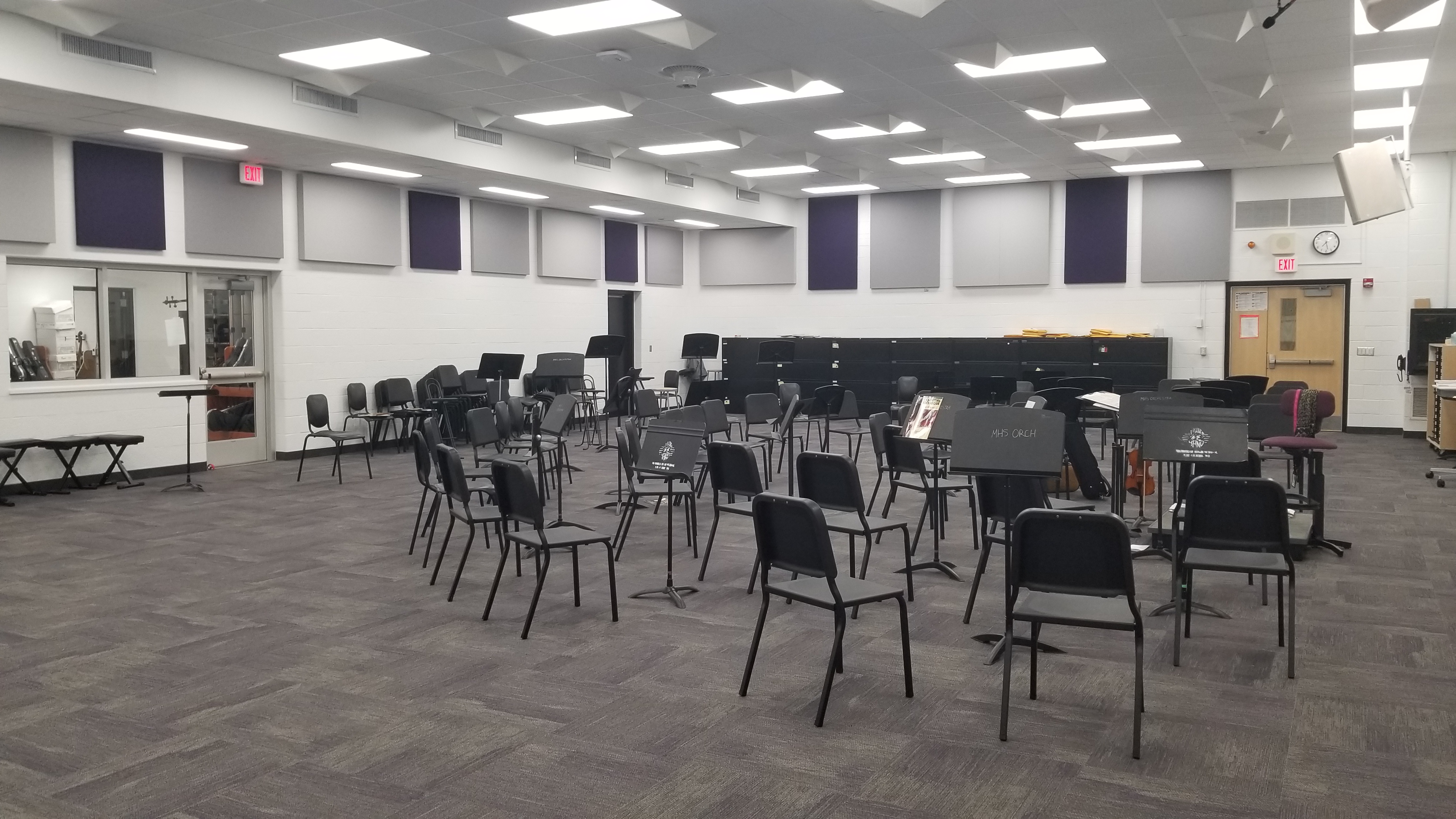 Welcome to the Memorial High School orchestra room! This room is where all of Memorial's orchestras meet during the day for class. The room is also open in ELT.